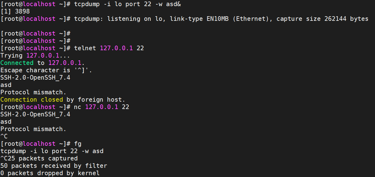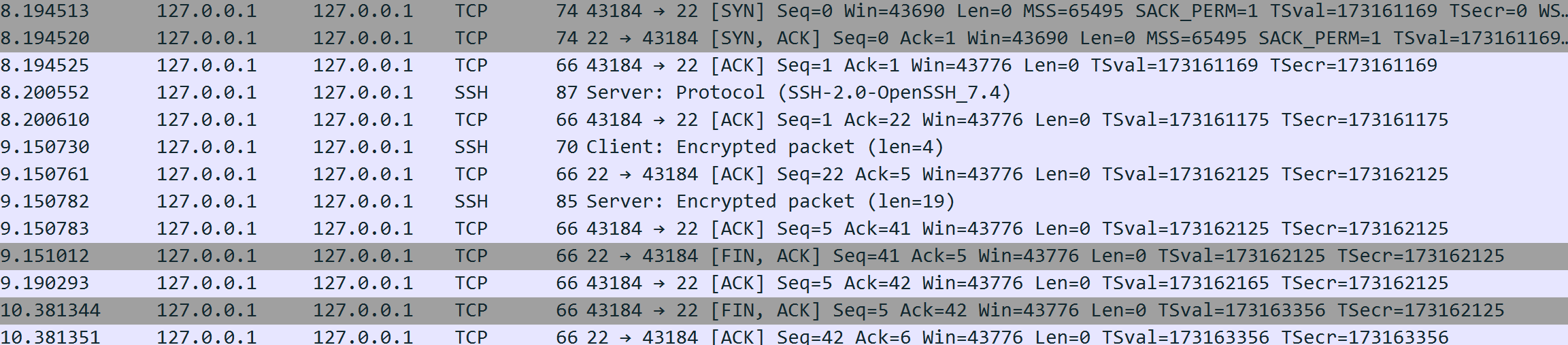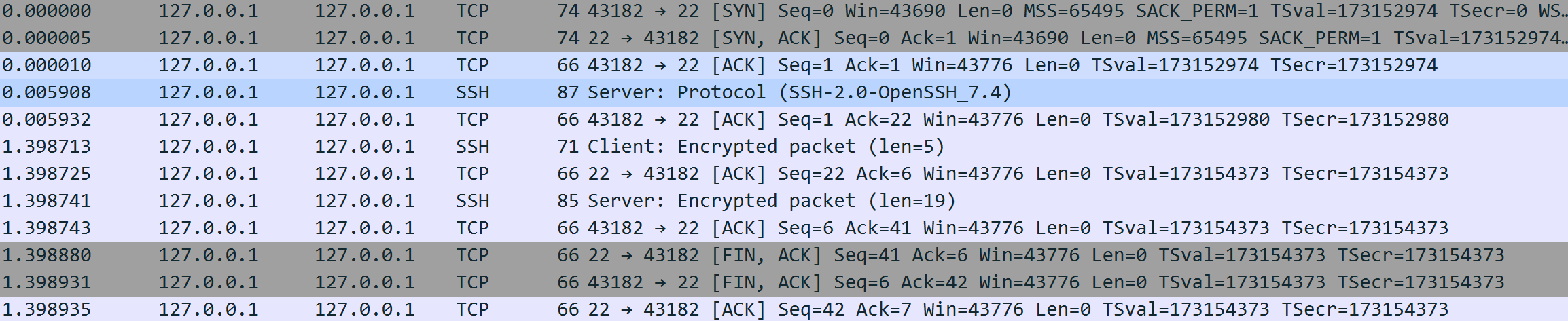 sshd에게 telnet telnet에게 하는 동작과 굉장히 유사하나, Connection closed 에 대한 동작이 다르다.