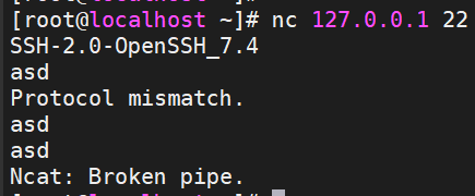 sshd에게 netcat sshd를 대상으로 파이프를 냅다 열어버리는 동작이다. 프로토콜 소개가 Full-Text로 오는것을 볼 수 있다.