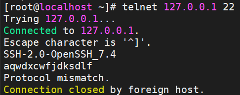 sshd에게 telnet telnet에게 하는 동작과 굉장히 유사하나, Connection closed 에 대한 동작이 다르다.