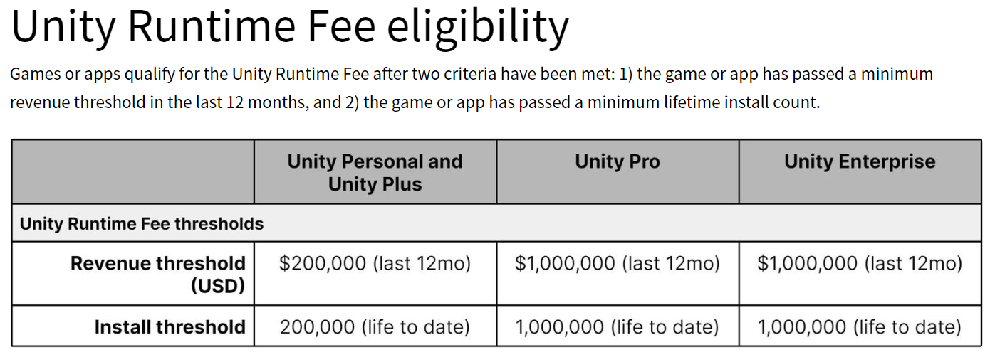 간단하게 이야기하면, 유니티 엔진으로 제작한 영리 활동을 하는 애플리케이션에 대해 설치당 요금을 매기겠다는 뜻이 된다.