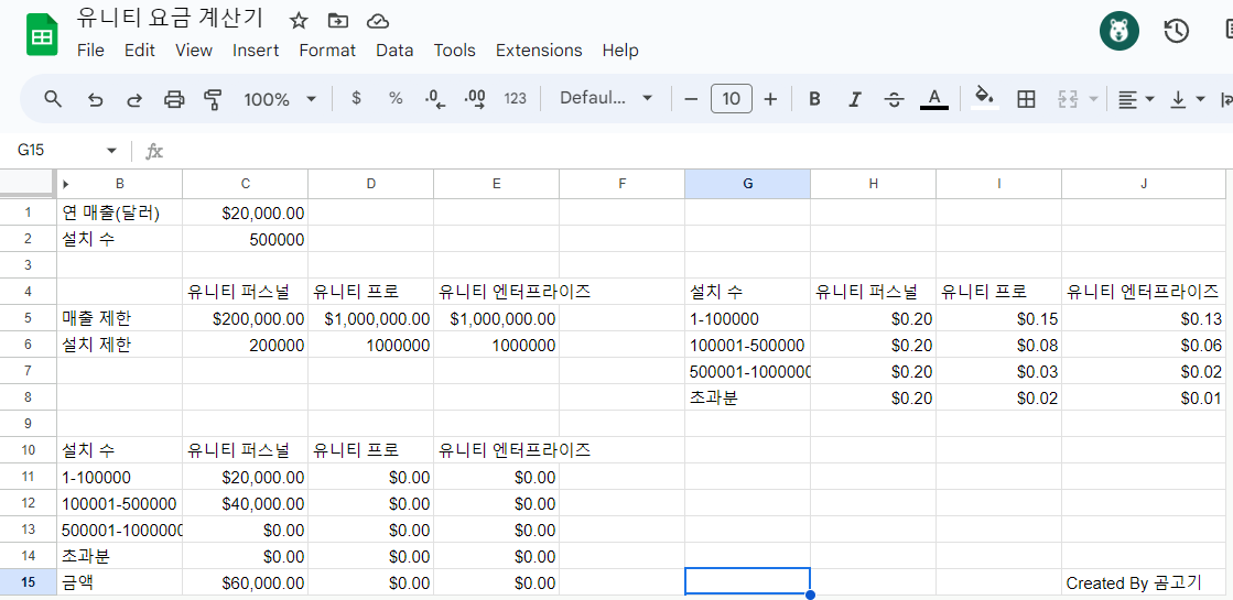 이 요금에 대한 계산을 스프레드시트로 만들어봤다. 바로가기